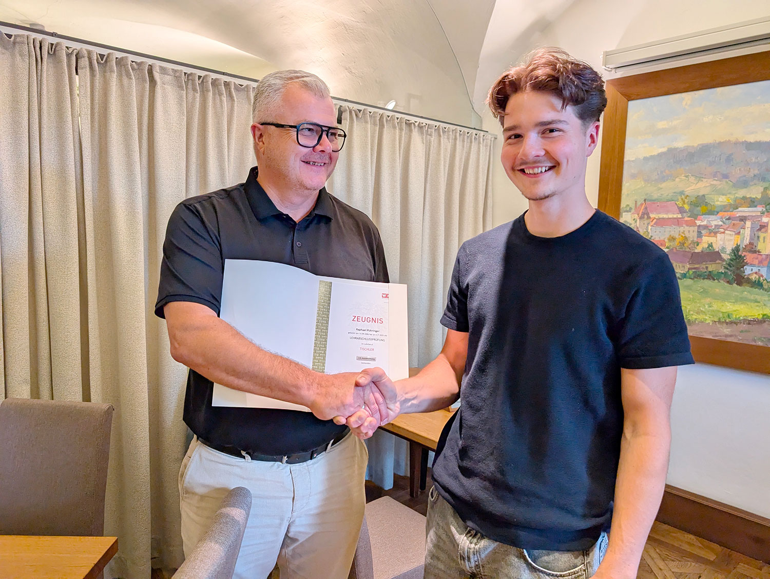 Bei Pühringer Freistadt steht die nächste Generation schon in den Startlöchern: Raphael Pühringer, Sohn von Geschäftsführer Harald , hat seine Möbel- und Bautischlerlehre kürzlich mit Auszeichnung abgeschlossen – wir gratulieren ganz herzlich!